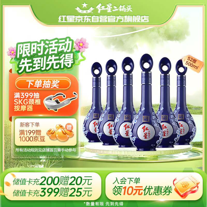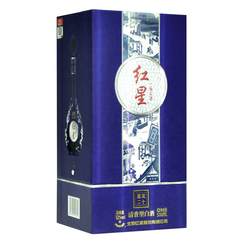 红星二锅头蓝花20 清香型白酒 52度500ml*6瓶 整箱装价格:2149.00元!