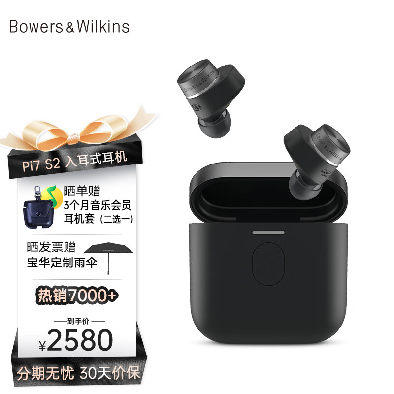 宝华韦健Bowers&Wilkins(B&W) Pi7二代 真无线主动降噪 HIFI运动蓝牙耳机Pi7 S2入耳式音乐智能消噪 苍墨黑价格:2580.00元!