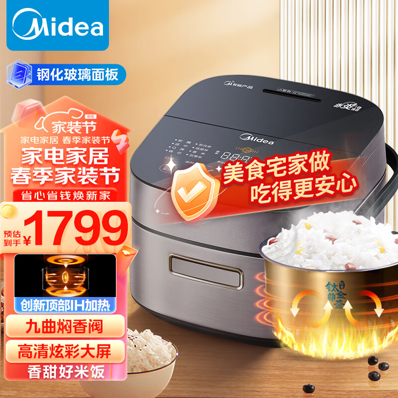 美的(Midea)赤炎臻香IH智能电饭煲Pro电饭锅家用4L钛金鼎釜九曲焖香WIFI智控蒸米饭锅EFB4022H(3-8人)价格:1999.00元!