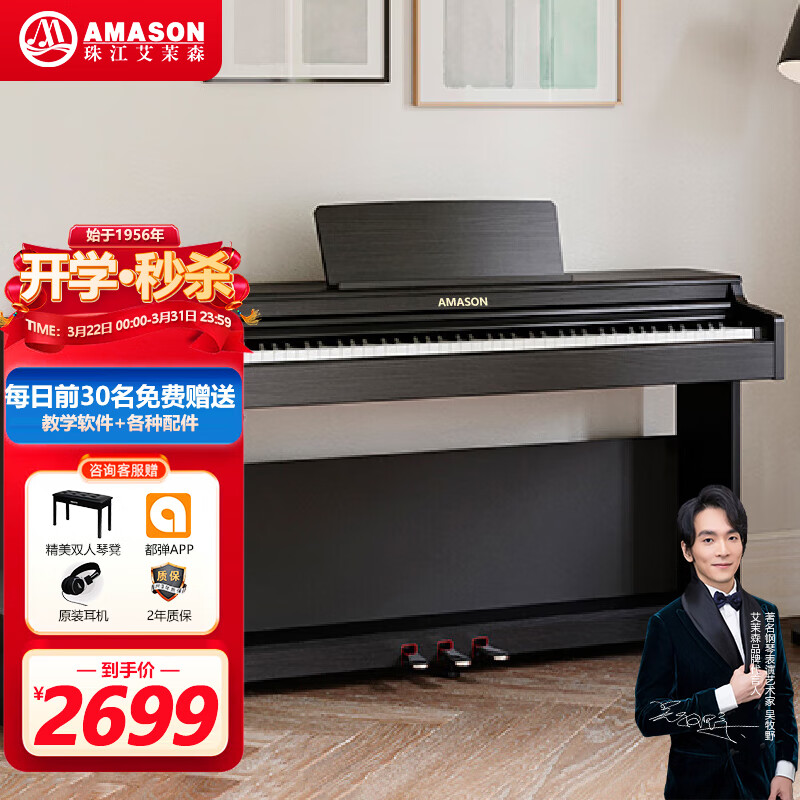 艾茉森(Amason)珠江钢琴 考级电钢琴88键重锤数码电子钢琴专业成人儿童V03S黑价格:3299.00元!