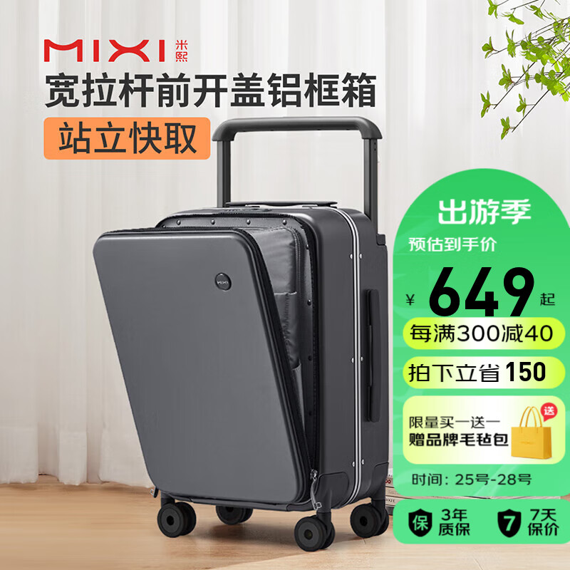 米熙前开盖宽拉杆箱子行李箱大容量商务托运密码箱男女24英寸矿岩灰75价格:799.00元!