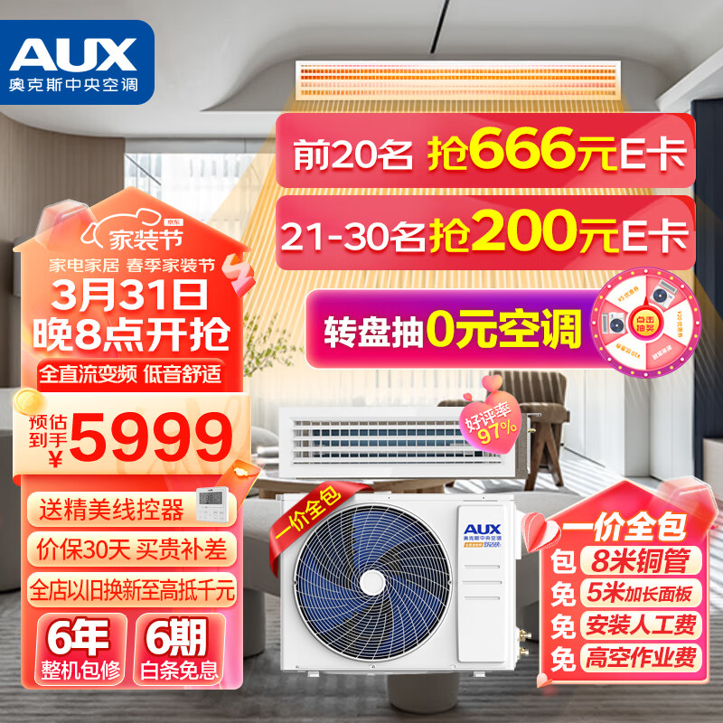 奥克斯(AUX)中央空调风管机一拖一3匹全直流变频 卡机客厅卧室嵌入式空调 舒适侠 GR-72DW/BPR3DQ-SSX(B3)价格:5989.00元!