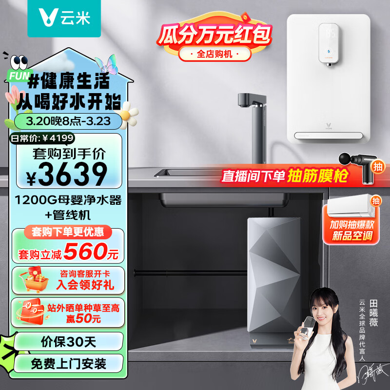 云米(VIOMI)Super 2 1200G全屋净水套装净水器+管线机MG2-B两件套家用直饮加热即热净水器净水机价格:4199.00元!