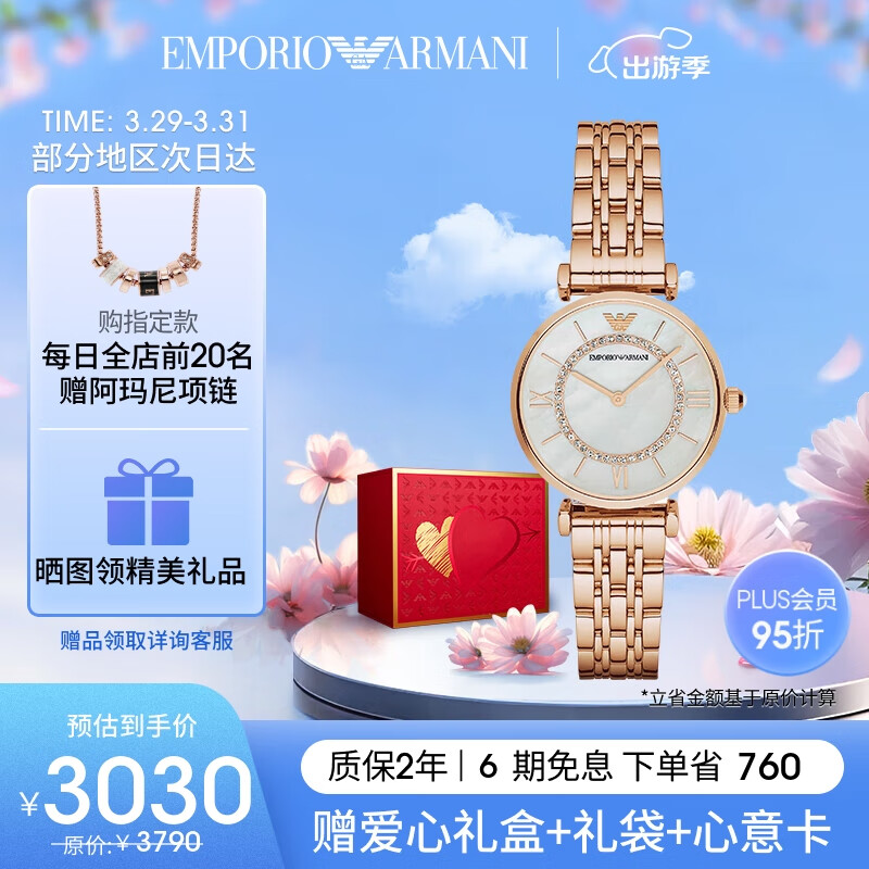 安普里奥·阿玛尼(Emporio Armani)手表女士满天星时尚石英贝母表盘女表送女友生日礼物 AR1909价格:3230.00元!