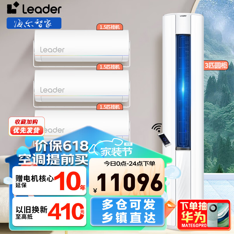 统帅(Leader)空调海尔空调出品新一级能效全直流变频冷暖 APP智控立柜式自清洁智能防直吹适用三室一厅空调套装价格:11096.00元!