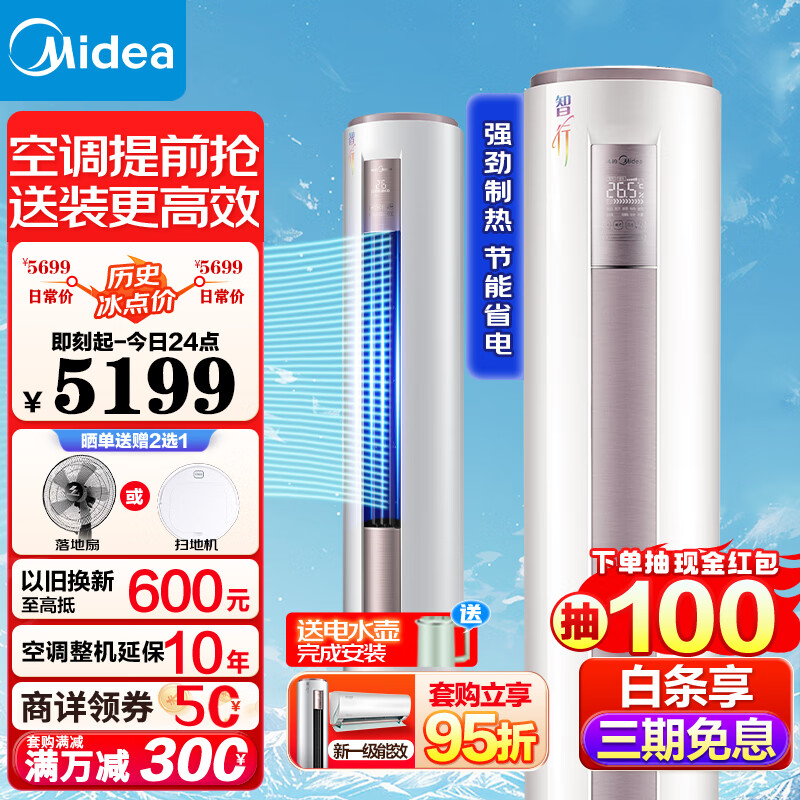 美的(Midea)智行三代自清洁三级能效3匹空调变频冷暖两用制冷制热柜机立式客厅大出风口空调家电以旧换新YA400价格:5199.00元!