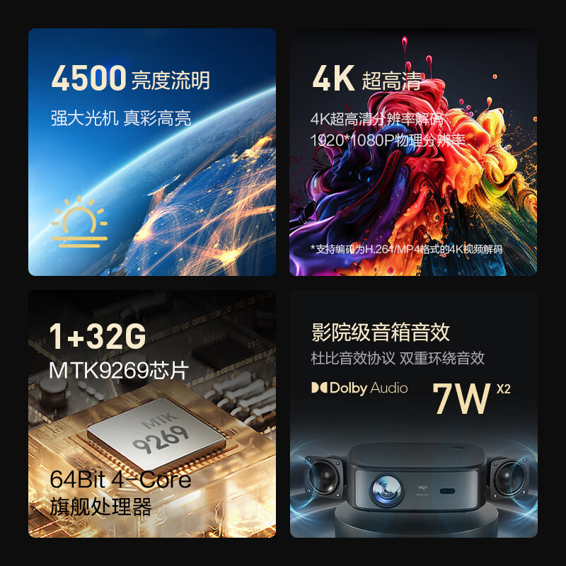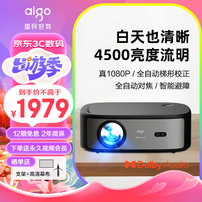 爱国者H98 投影仪家用超高清白天办公会议投影机卧室家庭影院(4500亮度流明 自动对焦 自动梯形校正)价格:2499.00元!