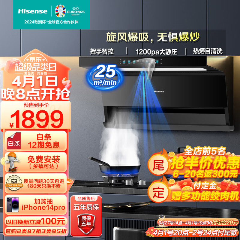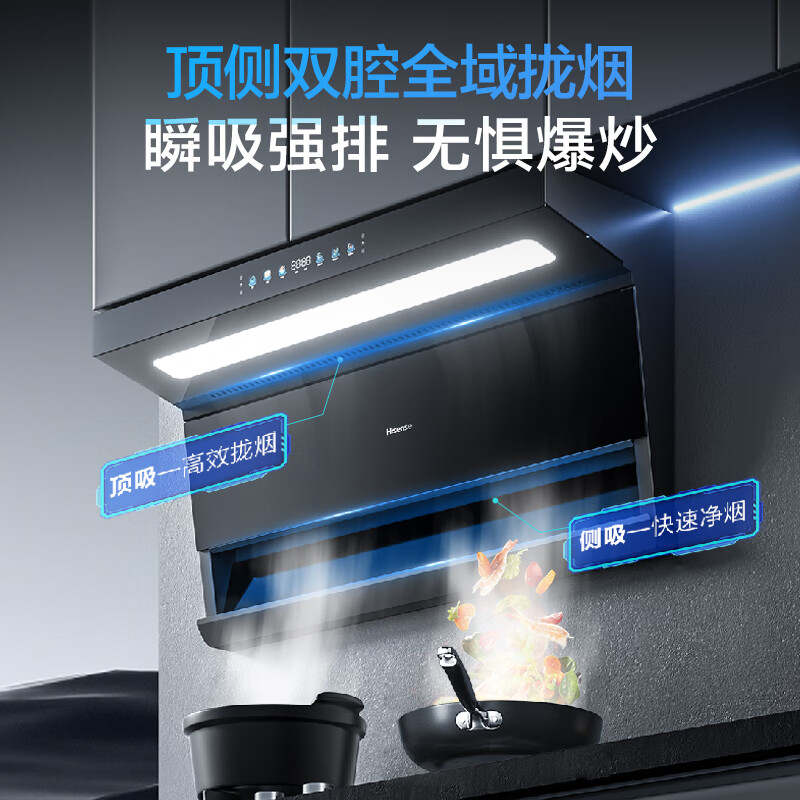 海信(Hisense)抽油烟机 顶侧双吸排油烟机7字型家用大吸力烟灶联动25立方挥手免拆洗DS11H(Plus)智享 以旧换新价格:1899.00元!