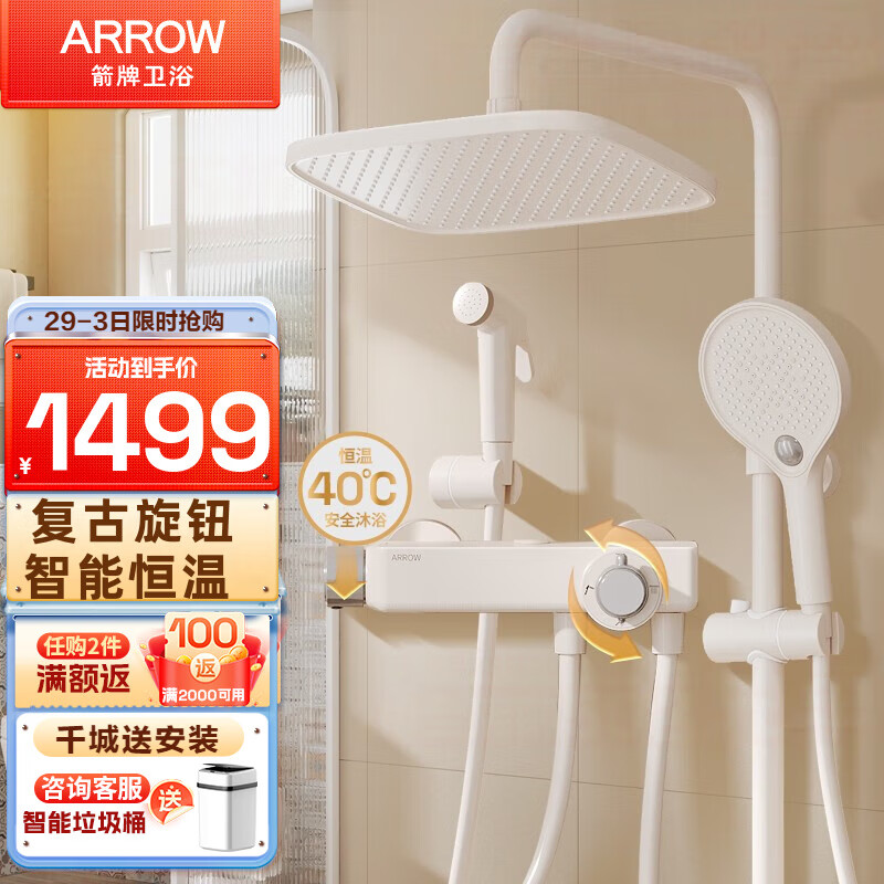 箭牌(ARROW) 淋浴花洒套装增压花洒奶油风花洒莲蓬头淋雨器套装浴室花洒 四功能防烫 智能恒温【奶油白】价格:1859.00元!