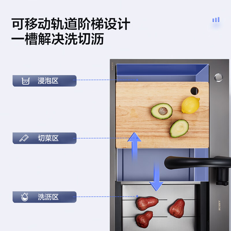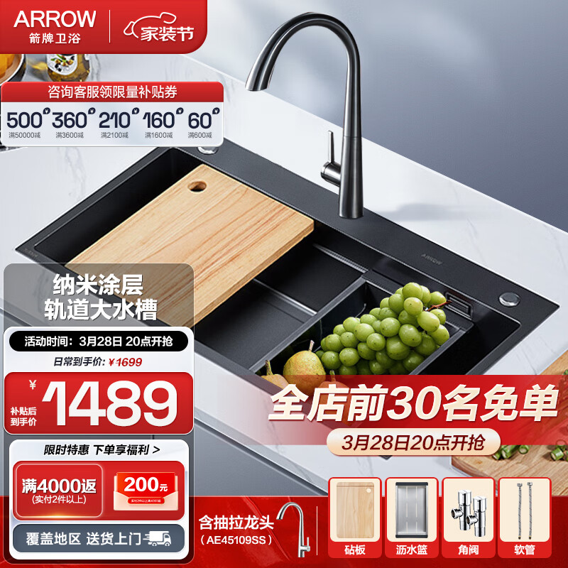箭牌(ARROW)304不锈钢加厚轨道大单槽厨房洗碗洗菜盆AE5578424G31-NB 纳米黑价格:2524.00元!