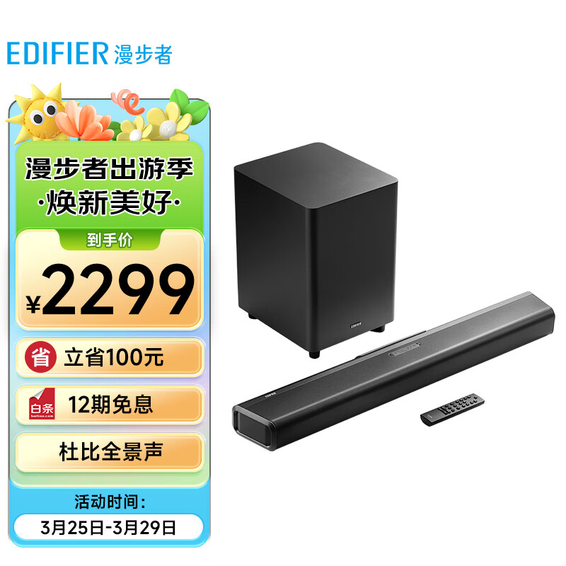 漫步者(EDIFIER)B70 电视音响 杜比全景声无线蓝牙回音壁 家庭影院 无线低音炮价格:2299.00元!