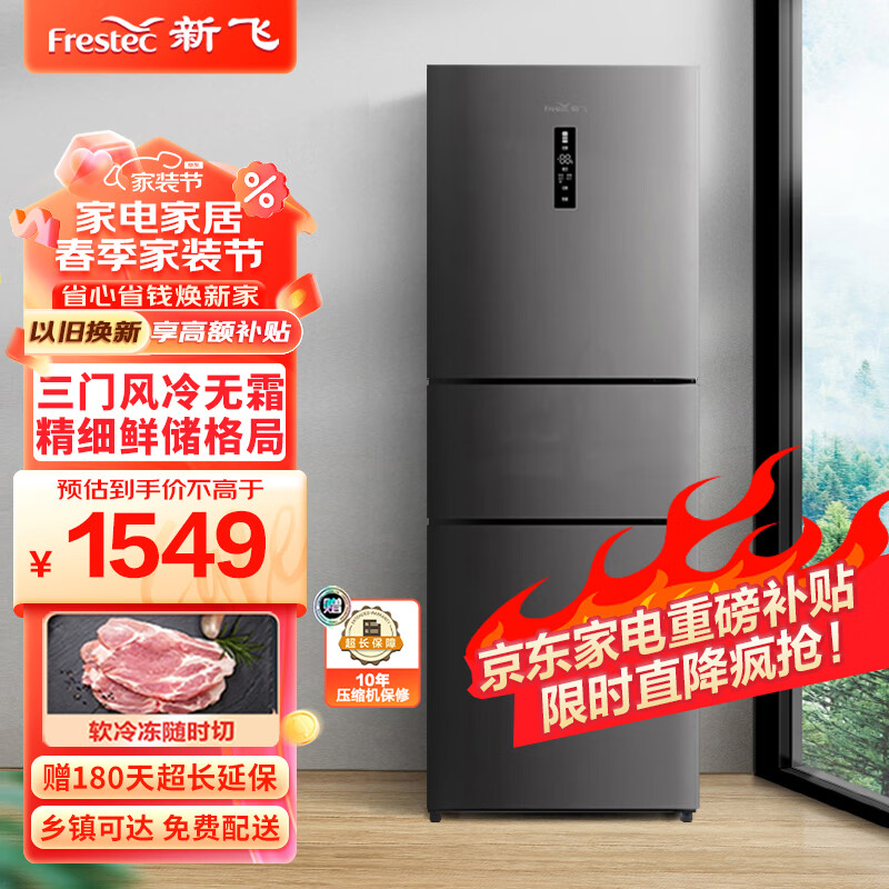 新飞(Frestec)260升变频一级能效三门冰箱中门宽幅变温家用无霜智能变温 节能低音BCD-260WK3AT价格:1549.00元!