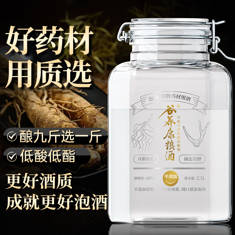 谷养康粮食酒 泡酒用酒大瓶清香高粱酒白酒泡果酒泡药酒水果酒纯粮酒 60度 2.5L 1瓶 适合动物类【质选】价格:1040.00元!