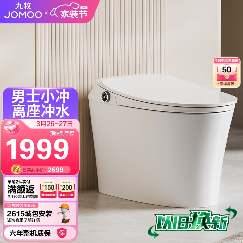九牧(JOMOO)智能马桶一体机纤薄抗菌全自动多功能智能坐便器ZS300I 305坑距价格:2279.00元!