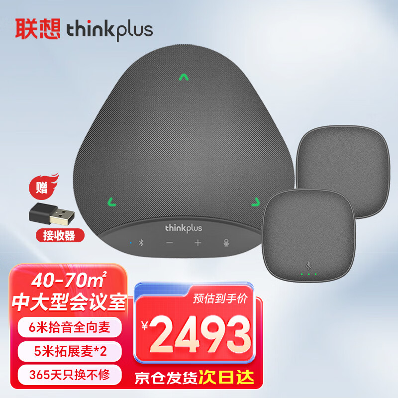 联想thinkplus视频会议办公设备蓝牙会议全向麦克风音响拾音会议扬声器适用40-70平米(全向麦+收音*2)价格:2680.00元!