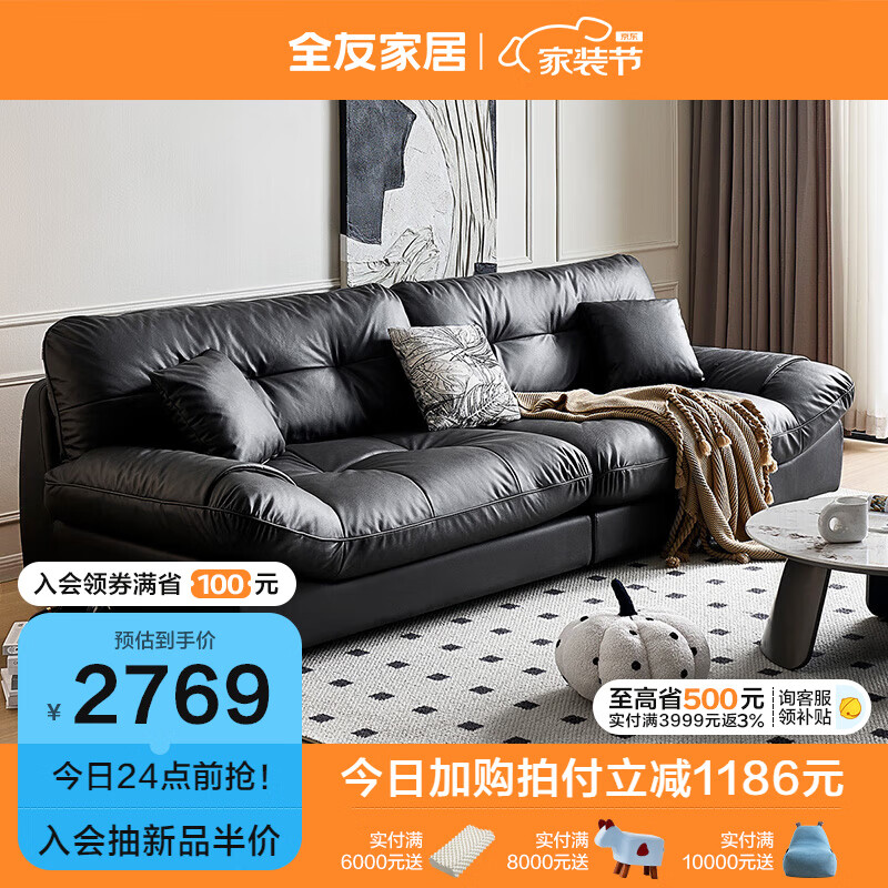 全友家居 科技布艺沙发客厅小户型直排简约风卧室云朵沙发家用111039价格:3955.71元!
