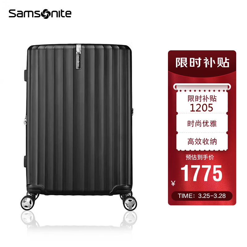 新秀丽(Samsonite)行李箱时尚竖条纹拉杆箱旅行箱黑色25英寸托运箱GU9*09002价格:1775.00元!