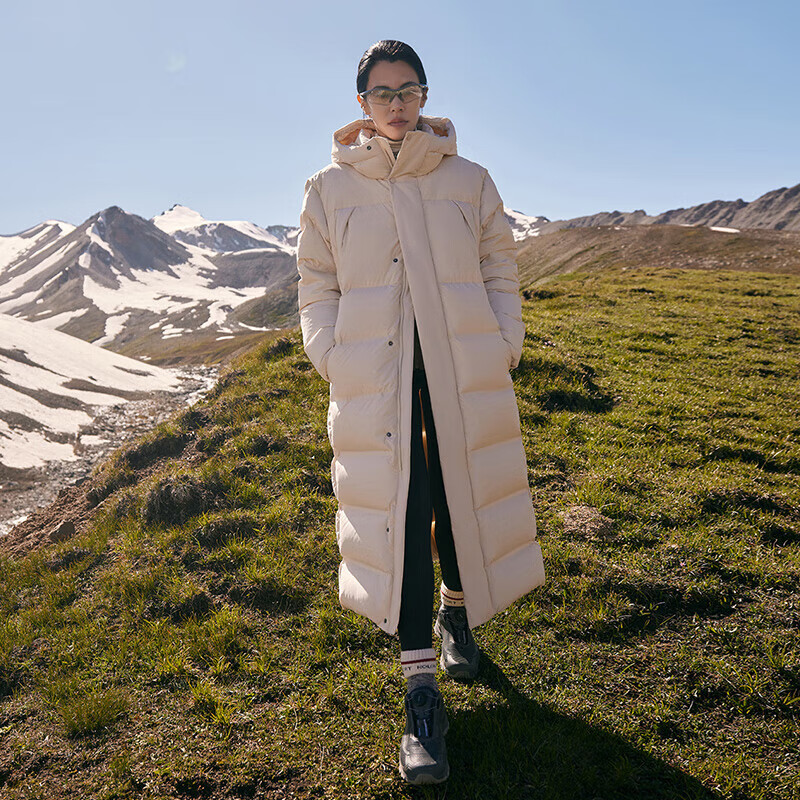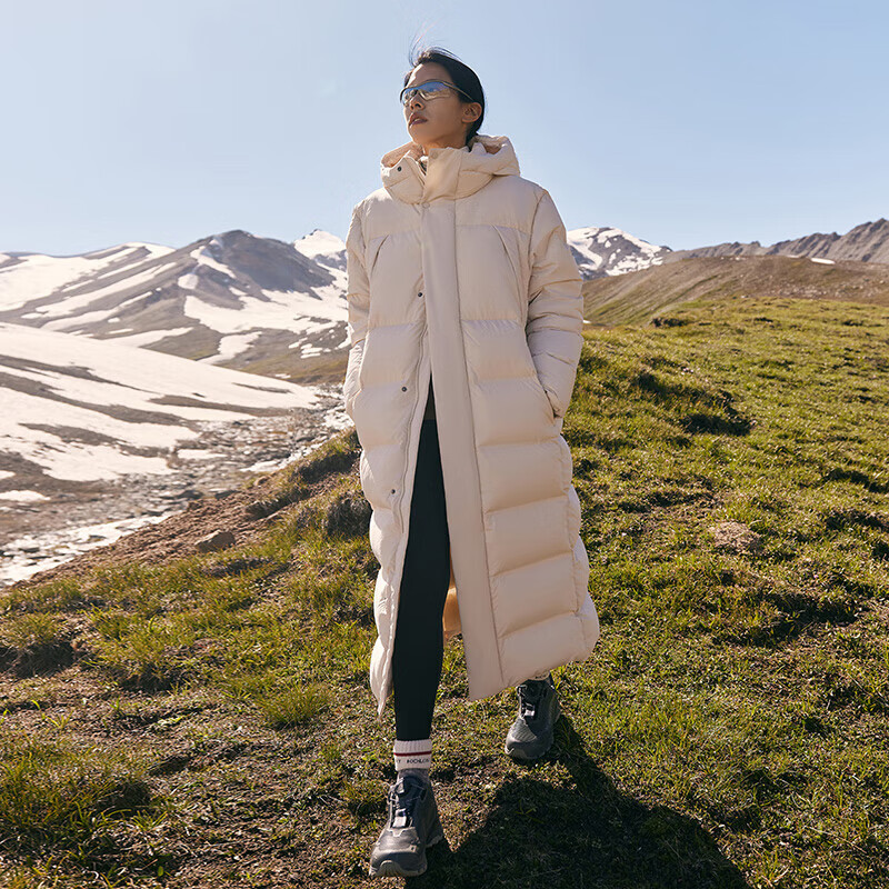 KOLON SPORT可隆情侣款户外防风长款重量鹅绒夹克羽绒服 杏色PE 2XL价格:3600.00元!