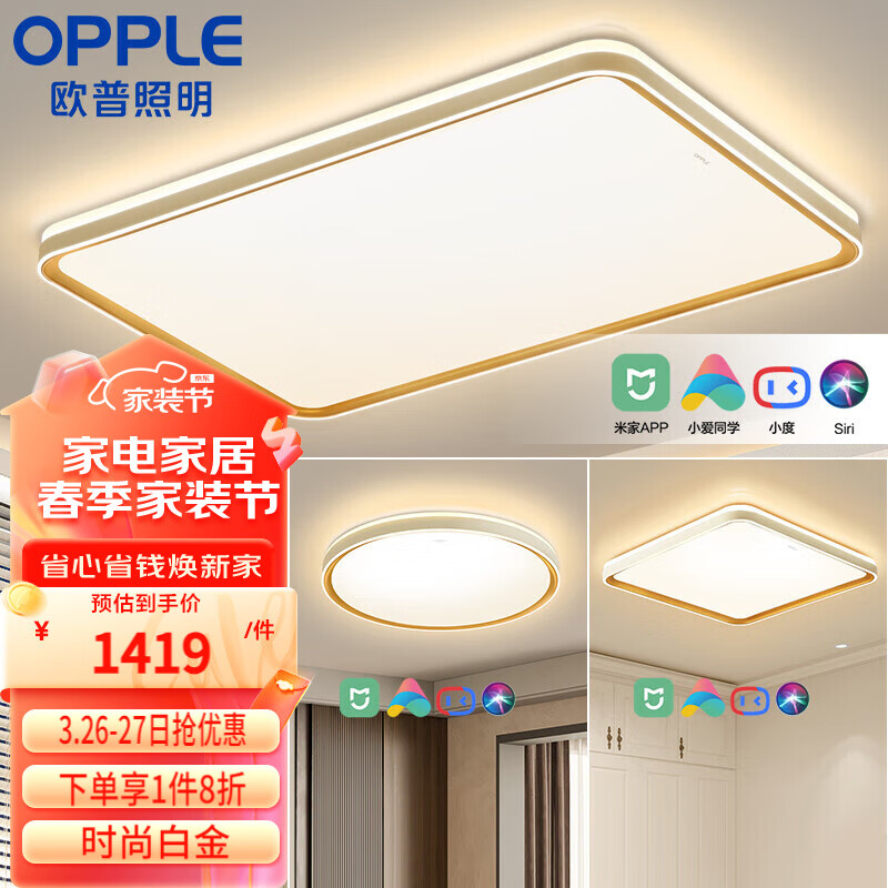 欧普照明(OPPLE)LED智能吸顶灯客厅灯AI语音米家APP控制灯具灯饰套餐 智能音箱/AI智控调光 品见白7价格:1773.00元!