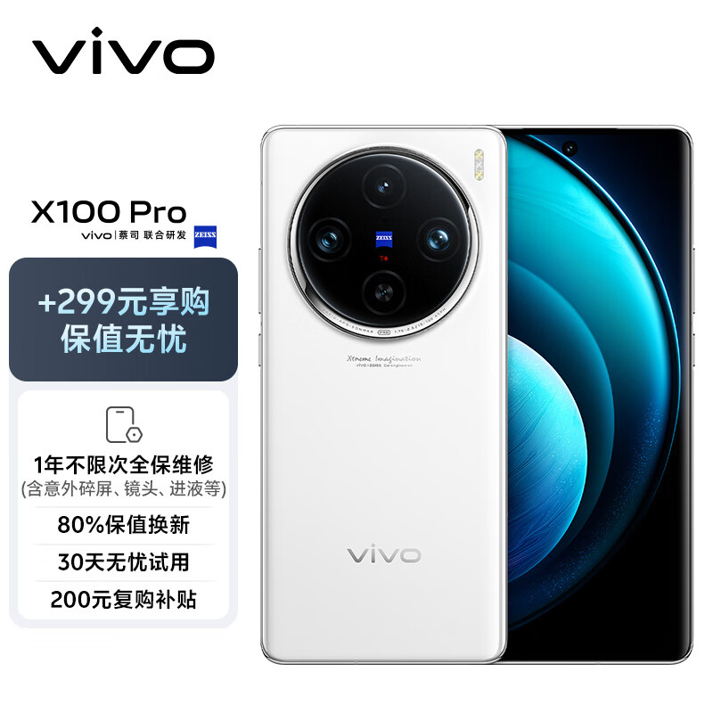 vivo X100 Pro 12GB+256GB 白月光【保值无忧套装】蔡司APO超级长焦 蓝晶×天玑9300 5400mAh蓝海电池 手机价格:5298.00元!