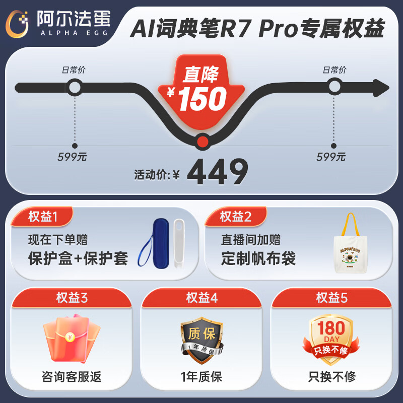 阿尔法蛋AI词典笔R7 Pro 英语点读笔神器 翻译笔离线扫描 中小学英汉扫读学习笔单词笔电子词典学习机价格:449.00元!