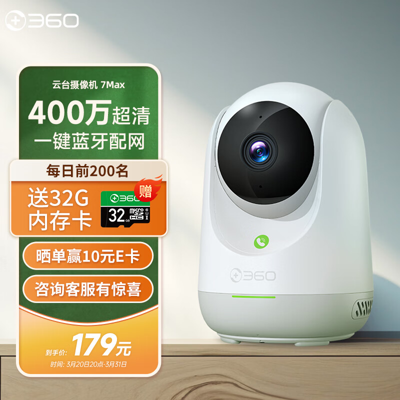360云台摄像机7Max 2.5K云台版高清400万像素微光全彩家用监控手机远程双向通话360度旋转婴儿看护器价格:179.00元!