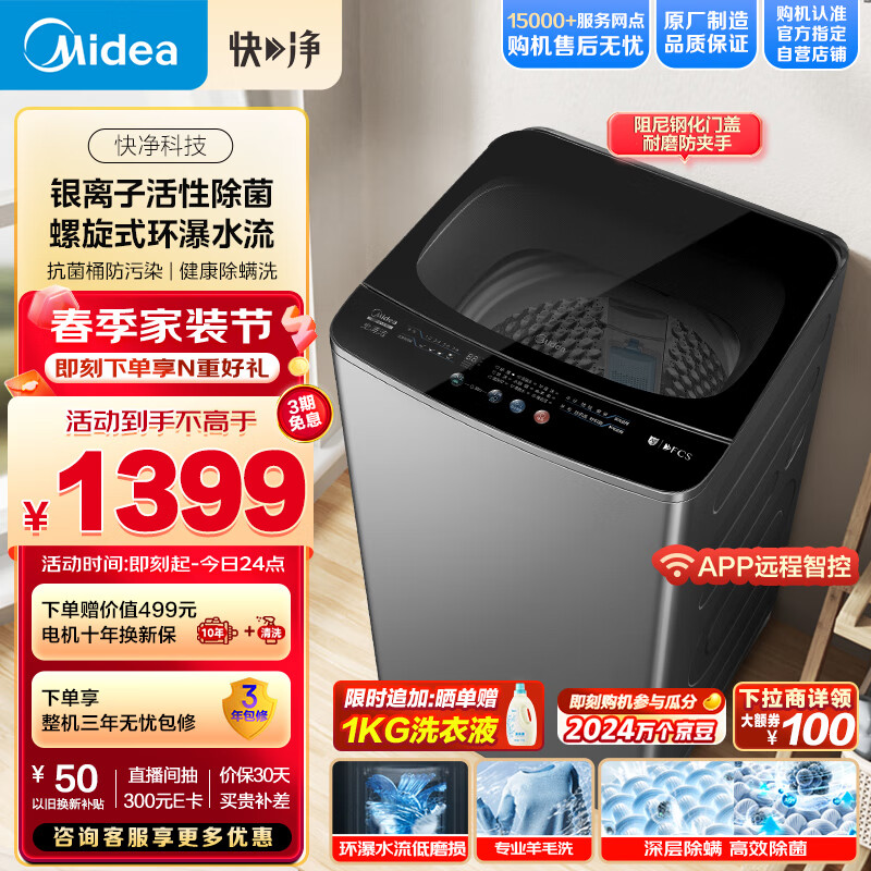 美的(Midea)波轮洗衣机全自动 快净系列 10公斤 环瀑水流低磨损 健康除螨 远程智控 专利免清洗 MB100V51Y价格:1399.00元!