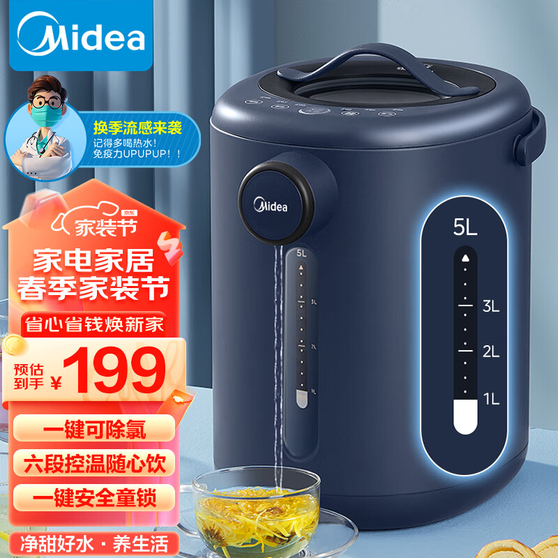 美的(Midea)电热水瓶热水壶电水壶304不锈钢暖水壶净甜5L大容量除氯热水瓶多段控温恒温开水壶烧水壶P12Q价格:199.00元!