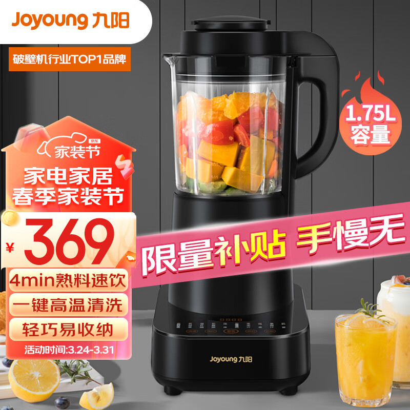 九阳(Joyoung)破壁机 超薄降噪破壁机家用加热豆浆机辅食机榨汁杯多功能1.75L大容量L18-P510价格:369.00元!