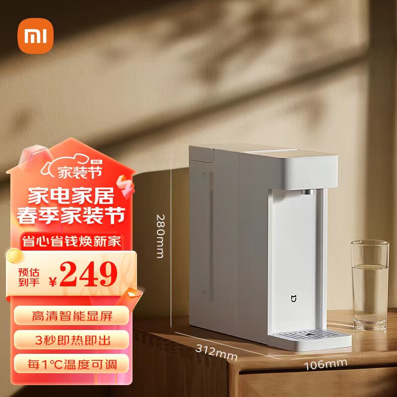 米家小米 即热饮水机S1 台式小型免安装 3秒速热 即热即饮 三挡水温 1℃调温 独立纯净水箱 直饮机价格:249.00元!