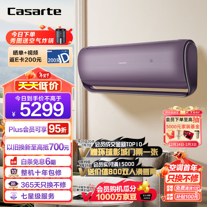 卡萨帝(Casarte)1.5匹 云鼎 双子极光 双循环软风 新一级变频 壁挂式空调挂机 CAS351UEA(81)U1 以旧换新价格:5299.00元!
