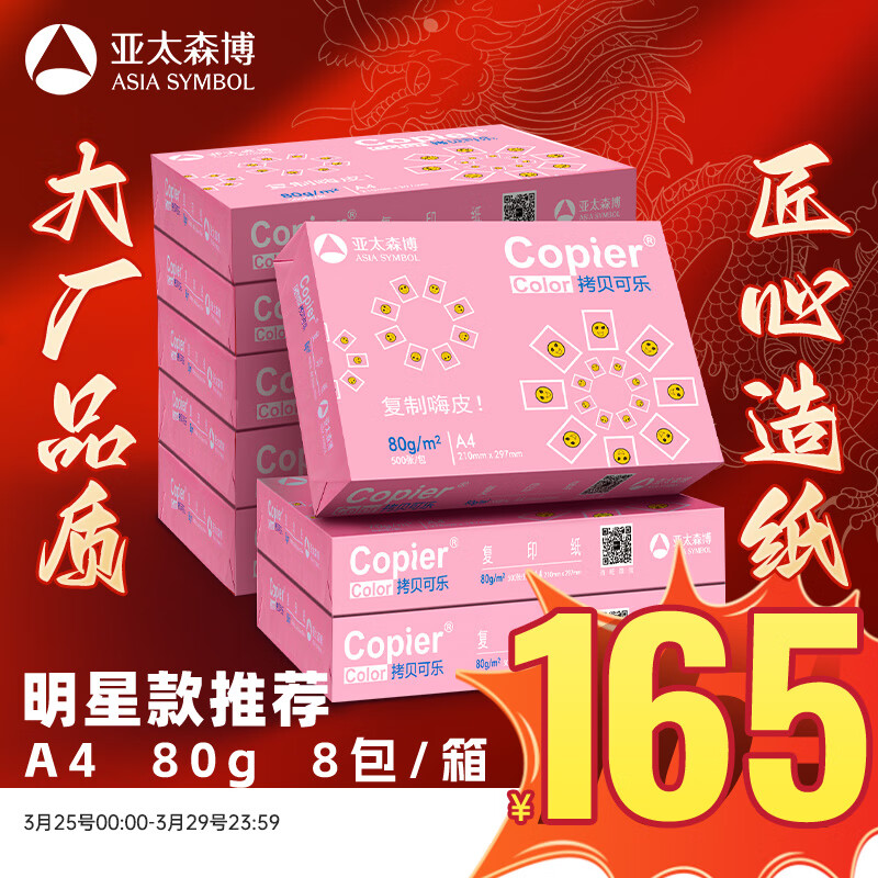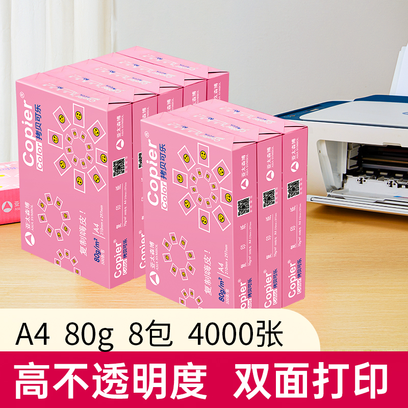 亚太森博拷贝可乐A4打印纸 80g 500张*8包 双面打印不透印 字迹清晰 复印纸 整箱4000张【专业造纸厂牌】价格:165.00元!