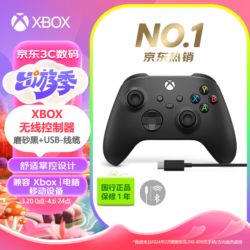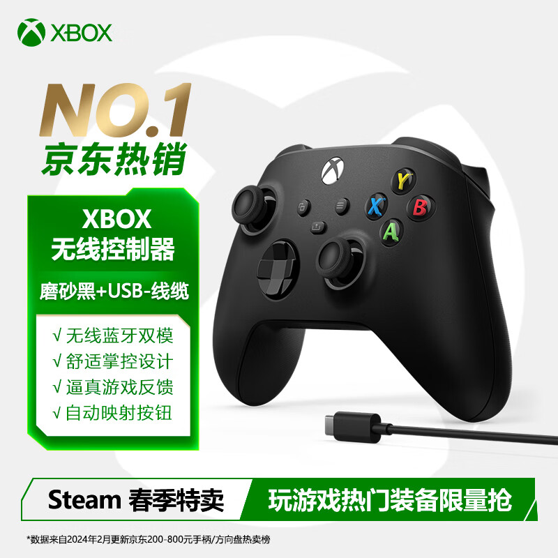 微软Xbox游戏手柄 磨砂黑+USB-C线缆 PC游戏手柄 蓝牙连Win10/平板 无线连Xbox 有线连Steam价格:369.00元!