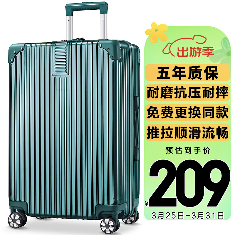 梵地亚行李箱男28英寸万向轮拉杆箱女大容量学生旅行箱密码箱皮箱子军绿价格:209.00元!