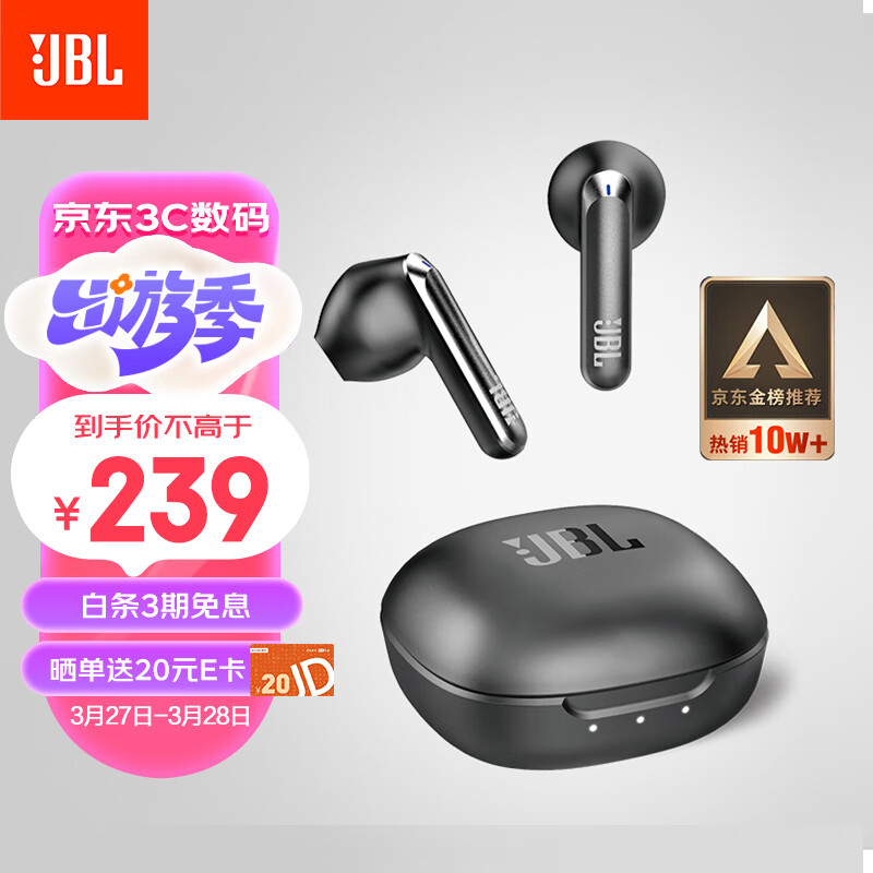 JBL T280TWS X2 真无线蓝牙耳机 半入耳音乐耳机 通话降噪运动防汗 苹果华为小米带麦游戏耳机 星空黑价格:239.00元!