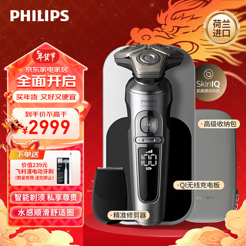 飞利浦(PHILIPS)电动剃须刀SkinIQ肌能感应刮胡刀奢享高端蜂巢9系整机荷兰进口 生日/新年礼物送男友送老公送长辈 高端奢享9系|SP9871【敏感肌适用】 普通装价格:3399.00元!