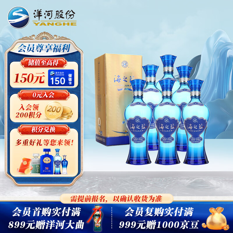 洋河蓝色经典 海之蓝 42度 480ml*6瓶 整箱装 绵柔浓香型白酒价格:928.00元!