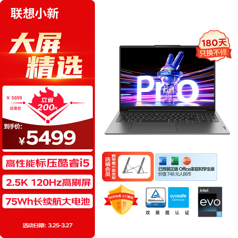 联想笔记本电脑小新Pro16超能本 高性能标压酷睿i5 16英寸轻薄本 32G 1T 2.5K高刷护眼屏 灰 游戏办公价格:5499.00元!