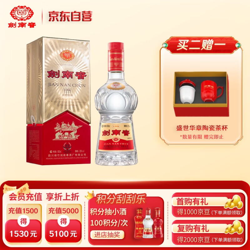 剑南春 经典版 52度 500ml 单瓶装 浓香型白酒 佛光版价格:589.00元!