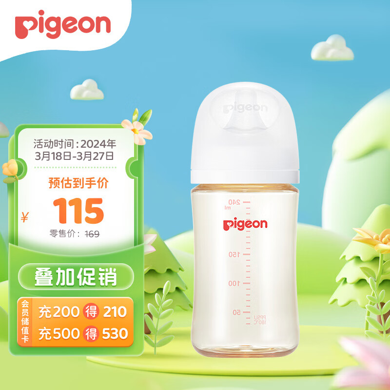 贝亲(Pigeon)自然实感第3代 婴儿PPSU奶瓶 宽口径 240ml AA192 L号 6个月以上价格:118.30元!