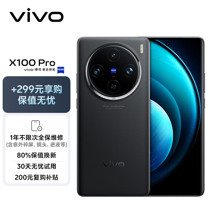 vivo X100 Pro 16GB+256GB 辰夜黑【保值无忧套装】蔡司APO超级长焦 蓝晶×天玑9300 5400mAh蓝海电池 手机价格:5598.00元!