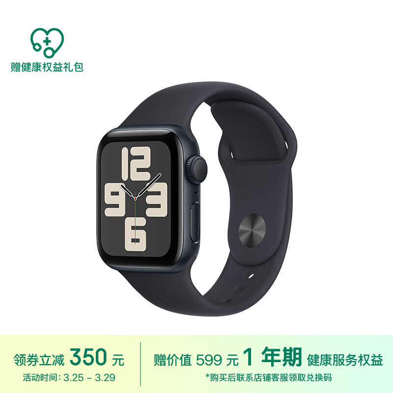 Apple/苹果 Watch SE 2023款智能手表GPS款40毫米午夜色铝金属表壳午夜色运动型表带S/M MR9X3CH/A价格:1999.00元!