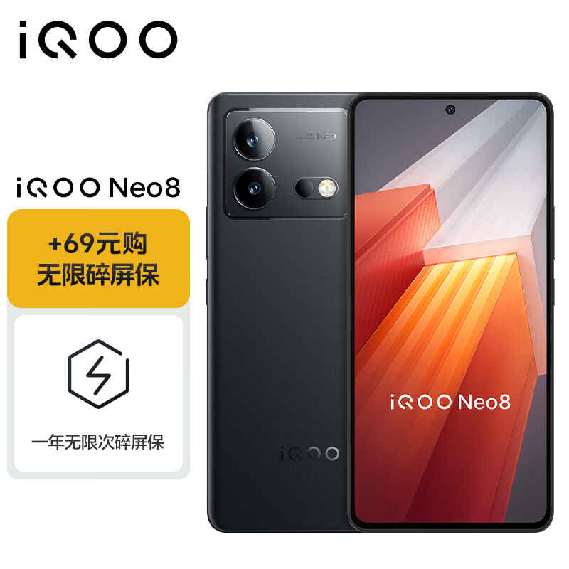 vivo【iQOO安心保-钻石服务包套装】iQOO Neo8 12GB+256GB 夜岩 代骁龙8+ 自研芯片V1+ 5G游戏电竞手机价格:2368.00元!