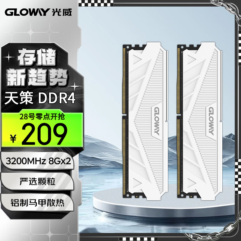 光威(Gloway)16GB(8GBx2)套装 DDR4 3200 台式机内存条 天策系列价格:229.00元!