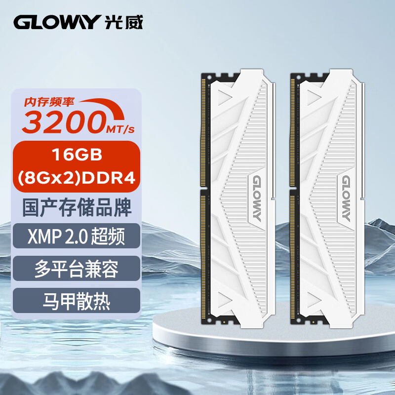 光威GLOWAY 天策系列 DDR4 PC 16GB(8GBx2) 3200 皓月白价格参考:
