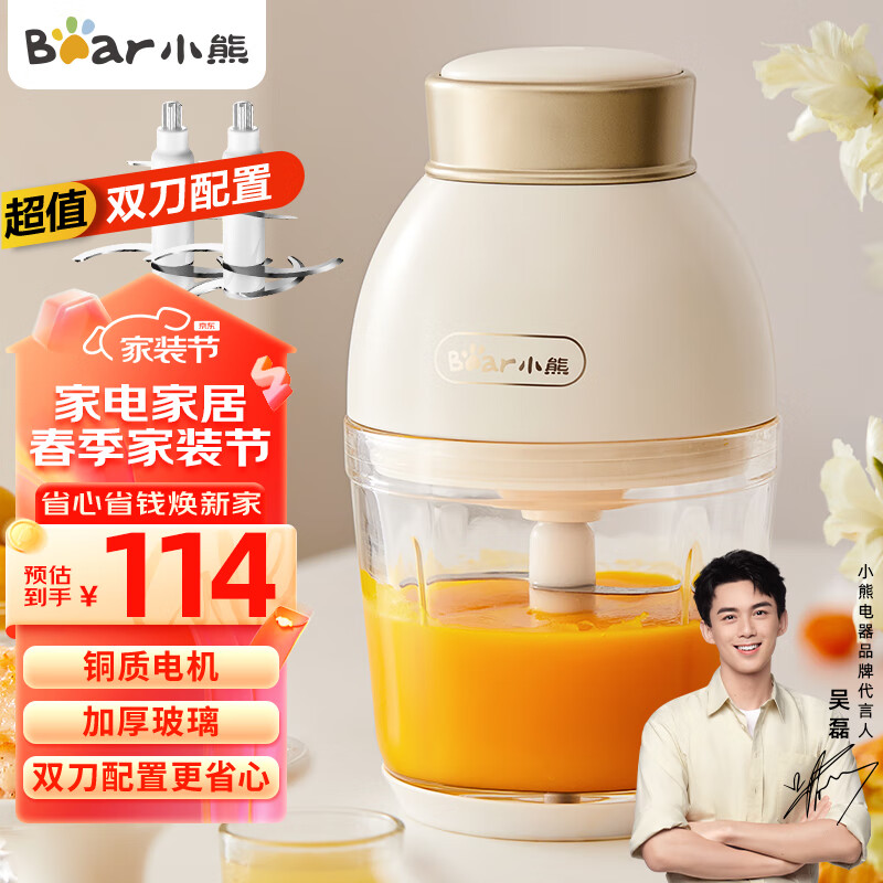 小熊(Bear)婴儿辅食机 小型多功能打泥搅拌机宝宝料理机 蒜蓉机 家用迷你绞馅碎肉机 QSJ-D02Q1 0.6L价格:114.00元!