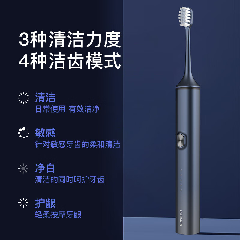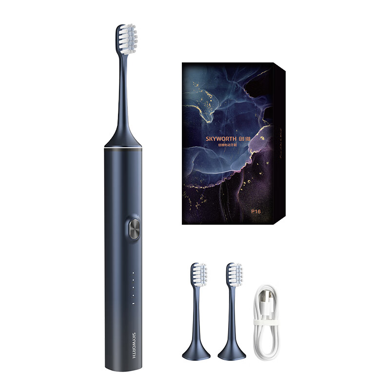 创维Skyworth电动牙刷成人充电式智能声波情侣全自动牙刷男士女学生党送男女朋友长续航 单支装P16蓝色款价格:89.00元!