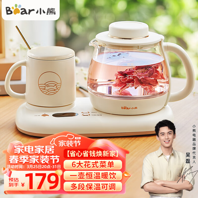 小熊(Bear)迷你养生壶 办公室烧水壶电水壶煮茶壶 保温杯垫多功能花茶壶煮水壶0.8升 YSH-D08D3价格:179.00元!