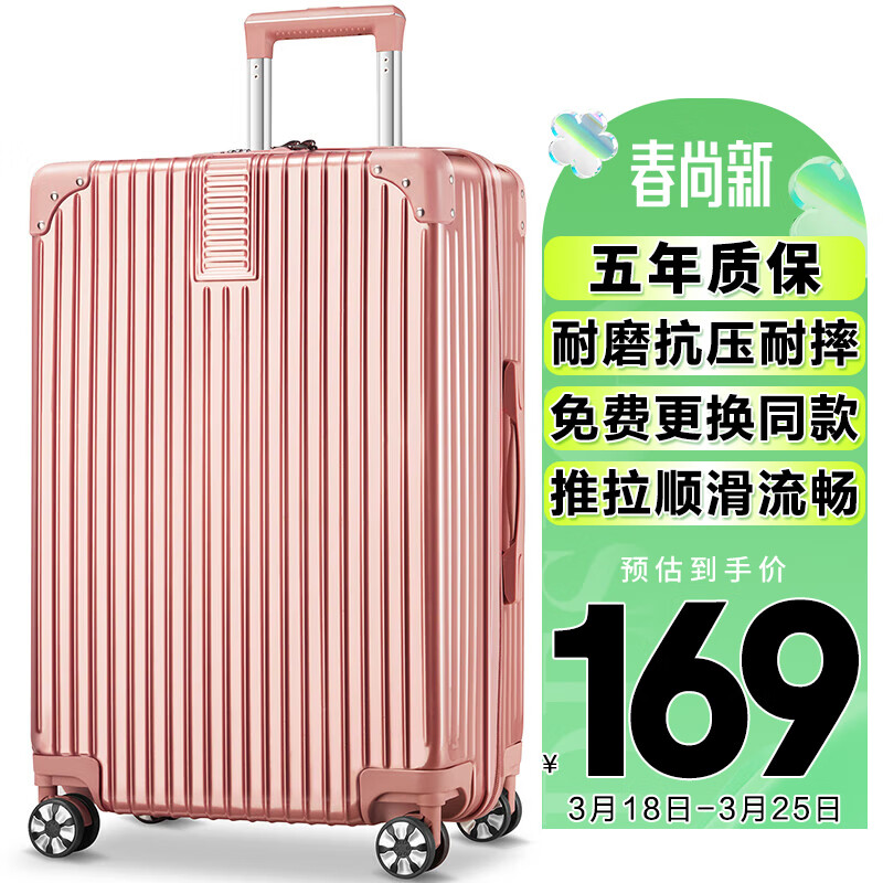 梵地亚行李箱男24英寸大容量拉杆箱飞机旅行箱包密码箱女皮箱子玫瑰金价格:169.00元!