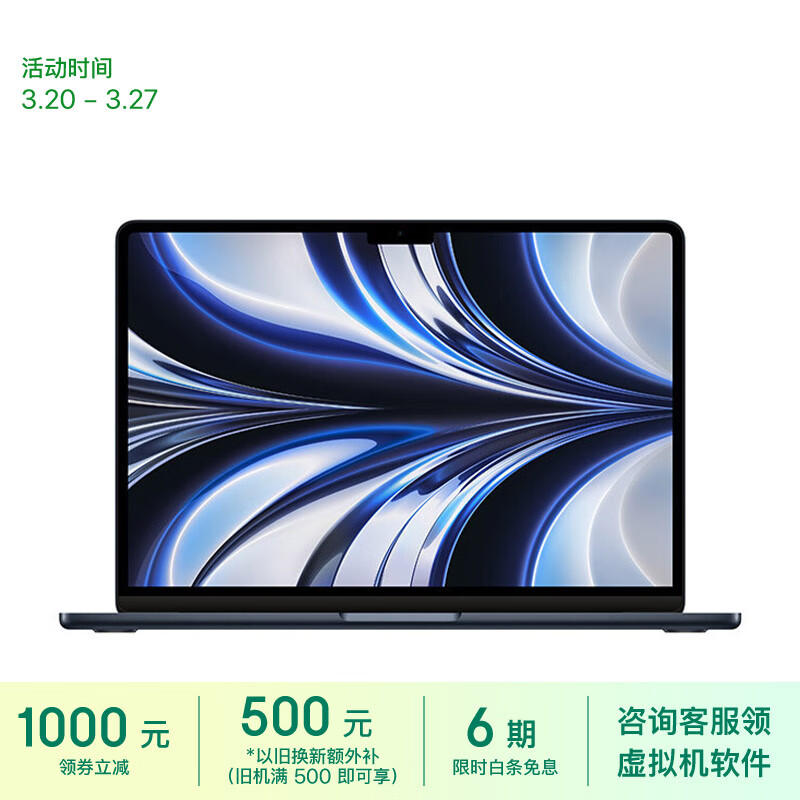 Apple/苹果2022款MacBookAir13.6英寸M2(8+8核)8G256G午夜色轻薄笔记本电脑MLY33CH/A价格:8999.00元!